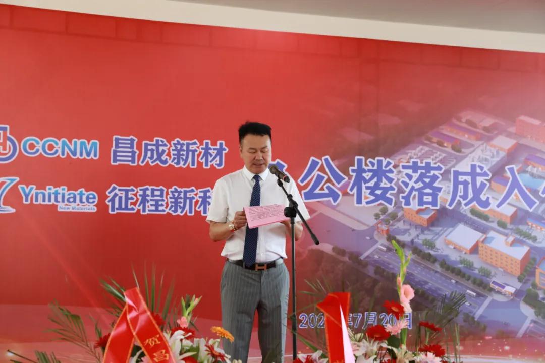 2021年7月20日,昌成新材廠區(qū)外彩旗飄揚、彩虹門佇立,新落成的辦公樓前,16個氫氣球帶著紅色的祝賀彩帶迎風(fēng)飛舞,東門兩側(cè)張貼著鮮紅的對聯(lián):啟征程老中青合力劃槳乘風(fēng)浪,誓昌成你我他同心揮毫繪江山,橫批:吉星高照,一樓員工食堂大廳人聲鼎沸、紅毯鋪地、綠植盎然,歡快的音樂縈繞四壁。昌成新材和征程新科辦公樓落成入住典禮將在這里隆重舉行。